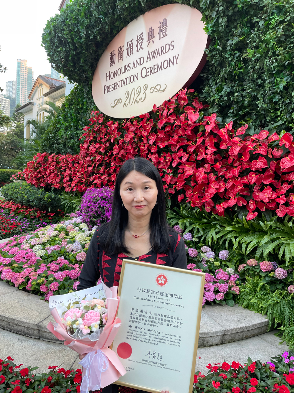 鄰舍輔導會高級執行幹事兼區域總監(離島)黃美鳳,一直秉持助人為樂的初心;由參與建立全新的青少年外展社會工作隊,至成為首批機構在東涌開設綜合服務中心的「開荒牛」,今年更獲頒「行政長官社區服務獎狀」,以表揚她在推動少數族裔居民參與青年活動及改善弱勢社群福祉方面的貢獻。在早年初任社工期間,她已積極進修,透過攻讀香港城市大學(城大)的社會工作學士課程,並接受碩士培訓,不斷提升專業水平,全心全意為亟待支援的社群與家庭提供關懷及幫助。