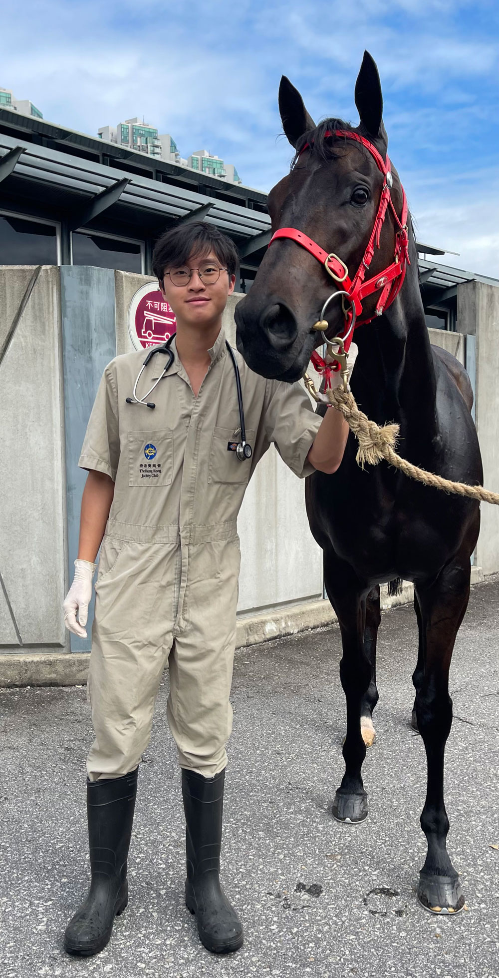 賽馬活動在香港大受歡迎,除了練馬師和騎師,還有一個重要角色就是獸醫。去年修畢香港城市大學(城大)賽馬會動物醫學及生命科學院的獸醫學學士課程即加入馬會團隊的李思銘,從課程中不但掌握與動物醫學相關的專業知識,經城大支持前往不同機構實習後,更發掘出馬匹的性格獨特有趣,最終如願進入馬會獸醫團隊,成為守護馬匹的一員。「我在城大的獸醫課程學習經歷深感充實和滿足,去年的校友日(Alumni Homecoming)我還特意回到母校與學弟妹分享就讀經驗。」