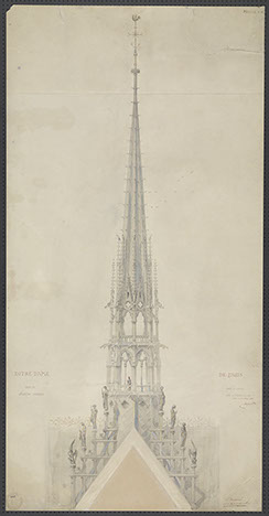 After the French Revolution (1789) and Emperor Napoleon I (reigned 1804-1814), Emperor Napoleon III came to power in the mid-nineteenth century, establishing the Second Empire (1852-1870). Napoleon III and his Prefect, Georges Eugène-Haussmann, undertook a spectacular modernization of Paris. Their urban project encompassed the whole city, from the construction of new avenues, bridges, monuments, to the standardization of house facades and house numbering system and to the use of uniform street structures (lights, benches, advertising columns). To plan out the renewal, miniature models of city areas were made, similar to the two shown here. At the same time the Emperor invested in restoring important medieval monuments, such as Notre-Dame Cathedral, whose spire was remade by the architect Eugène Viollet-le-Duc (1814-1879); his preparatory wooden model and drawings are exhibited here, the first time abroad since 1935.