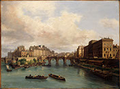 By the mid-nineteenth century, French artists began experimenting with new styles. They started painting for themselves, rather than for potential buyers, exploring effects of light, atmosphere, shadow, and color, and using a loose brushwork in what is called Impressionism. They also moved away from traditional subjects, such as famous city views, preferring everyday scenes, like those seen here by Louis-Robert Carrier-Belleuse (1848-1913), Alfred Renaudin (1866-1944), and Charles Baron. In the twentieth century, artists such as Jean Hélion (1904-1987) and Yves Brayer (1907-1990) continued to explore the legacy of the Impressionists and Post-Impressionists, using the ever-changing city as their inspiration.