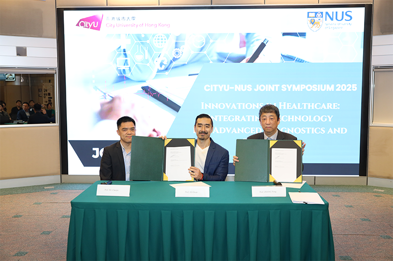 We and the National University of Singapore (NUS) successfully co-hosted the CityUHK-NUS Joint Symposium 2025, held on 9-10 April, under the theme "Innovations in Healthcare: Integrating Technology for Advanced Diagnostics and Treatment". This prestigious event brought together leading experts and researchers from Hong Kong and Singapore to explore the transformative role of technology in modern healthcare. The symposium featured a diverse range of presentations, panel discussions, demonstrations and poster sessions, focusing on cutting-edge advancements in innovations in healthcare, wearables and sensors, and advanced healthcare technologies.