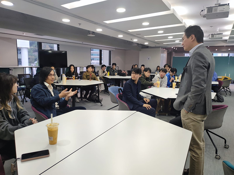 A meetup was arranged off-campus on 20 January 2026 to offer an informal occasion for BEngBME students to connect with the Industrial Advisors to learn more about the industry and expectations from employers, and receive guidance and suggestions on career development. Dr Charles Hu from Incando Therapeutics, Mr Roy Ng from Star Lite (HK) Limited and Mr Tse Lok Him from the government’s Electrical and Mechanical Services Department shared their insights and experience with our students during the event.