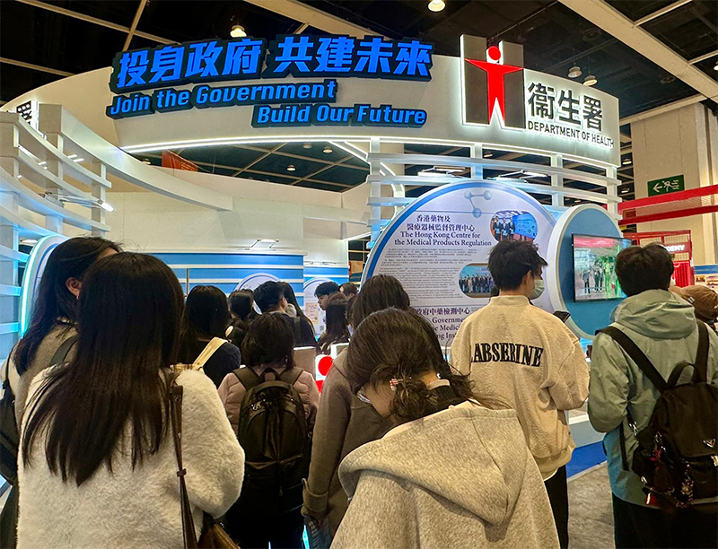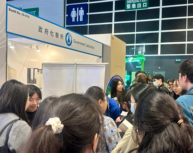 During the visit, students visited various exhibitions, such as the Department of Health, the Government Laboratory and The Hong Kong Health Care Federation Limited. They were also invited to participate in a sharing session, and learned from the successful stories of industry elites.