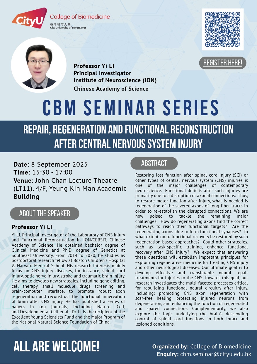 CBM Seminar Series: Repair, Regeneration and Functional Reconstruction after Central Nervous System Injury