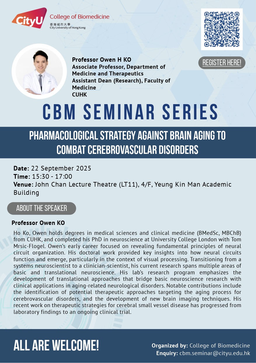 CBM Seminar Series: Pharmacological strategy against brain aging to combat cerebrovascular disorders