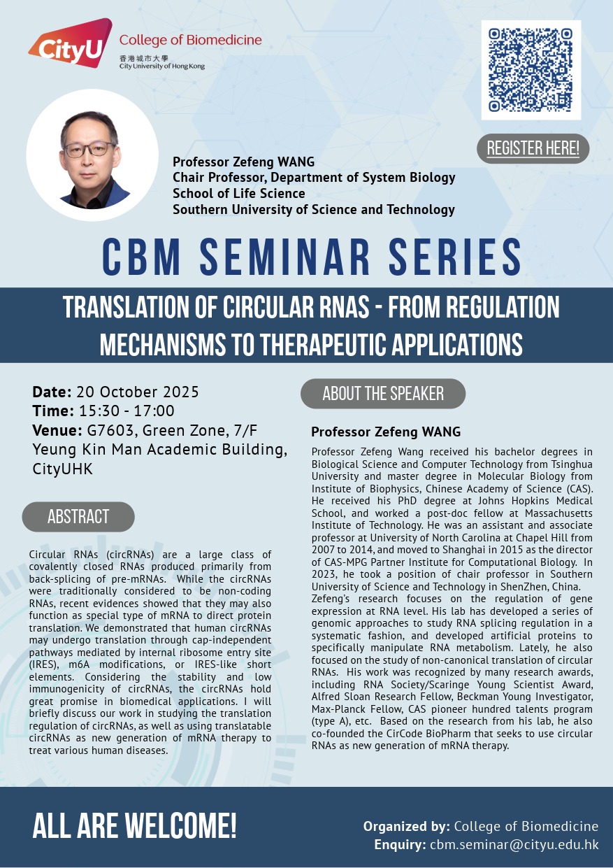 CBM Seminar Series: Translation of circular RNAs - from regulation mechanisms to therapeutic applications