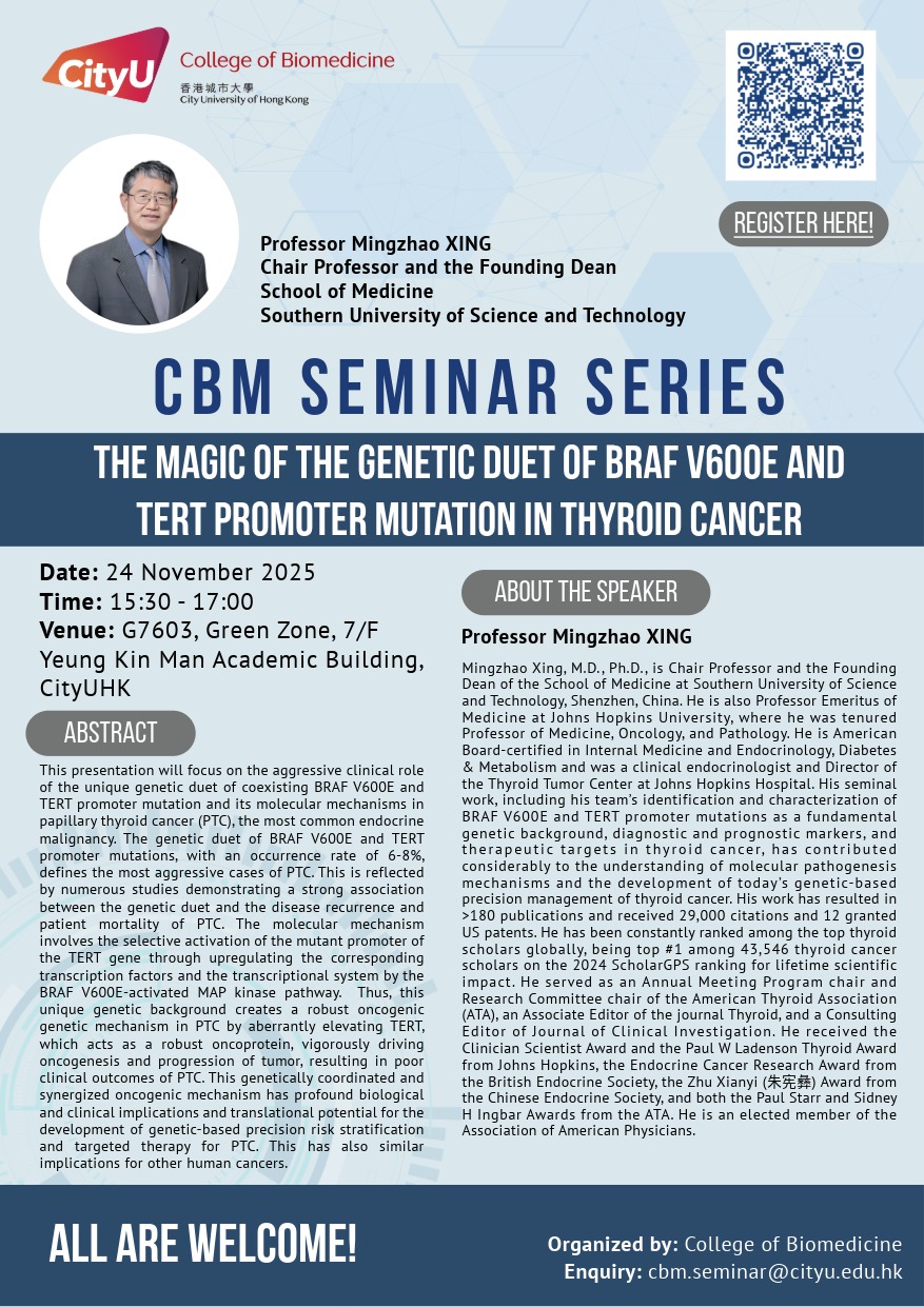 CBM Seminar Series: The magic of the genetic duet of BRAF V600E and TERT promoter mutation in thyroid cancer