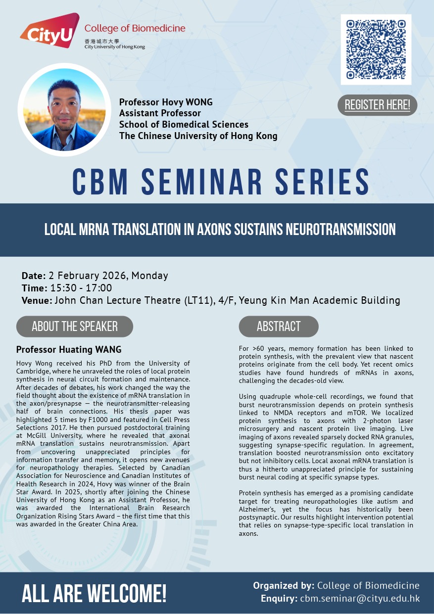 CBM SEMINAR SERIES: LOCAL MRNA TRANSLATION IN AXONS SYSTAINS NEUROTRANSMISSION