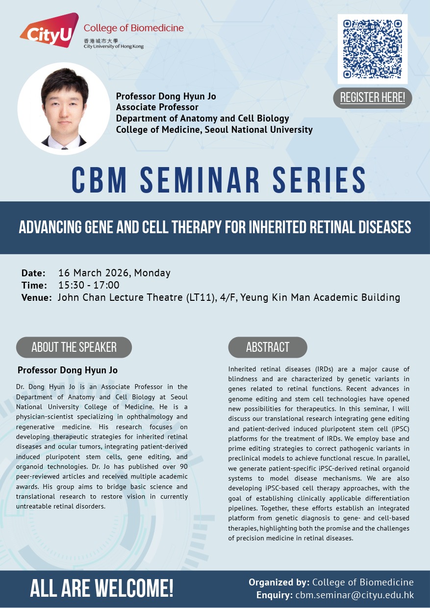 CBM SEMINAR SERIES: ADVANCING GENE AND CELL THERAPY FOR INHERITED RETINAL DISEASES
