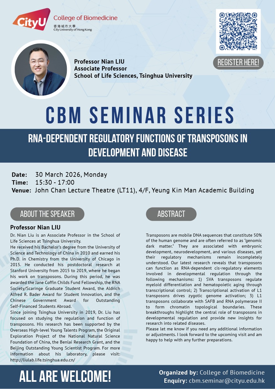 CBM SEMINAR SERIES: RNA-DEPENDENT REGULATORY FUNCTIONS OF TRANSPOSONS IN DEVELOPMENT AND DISEASE