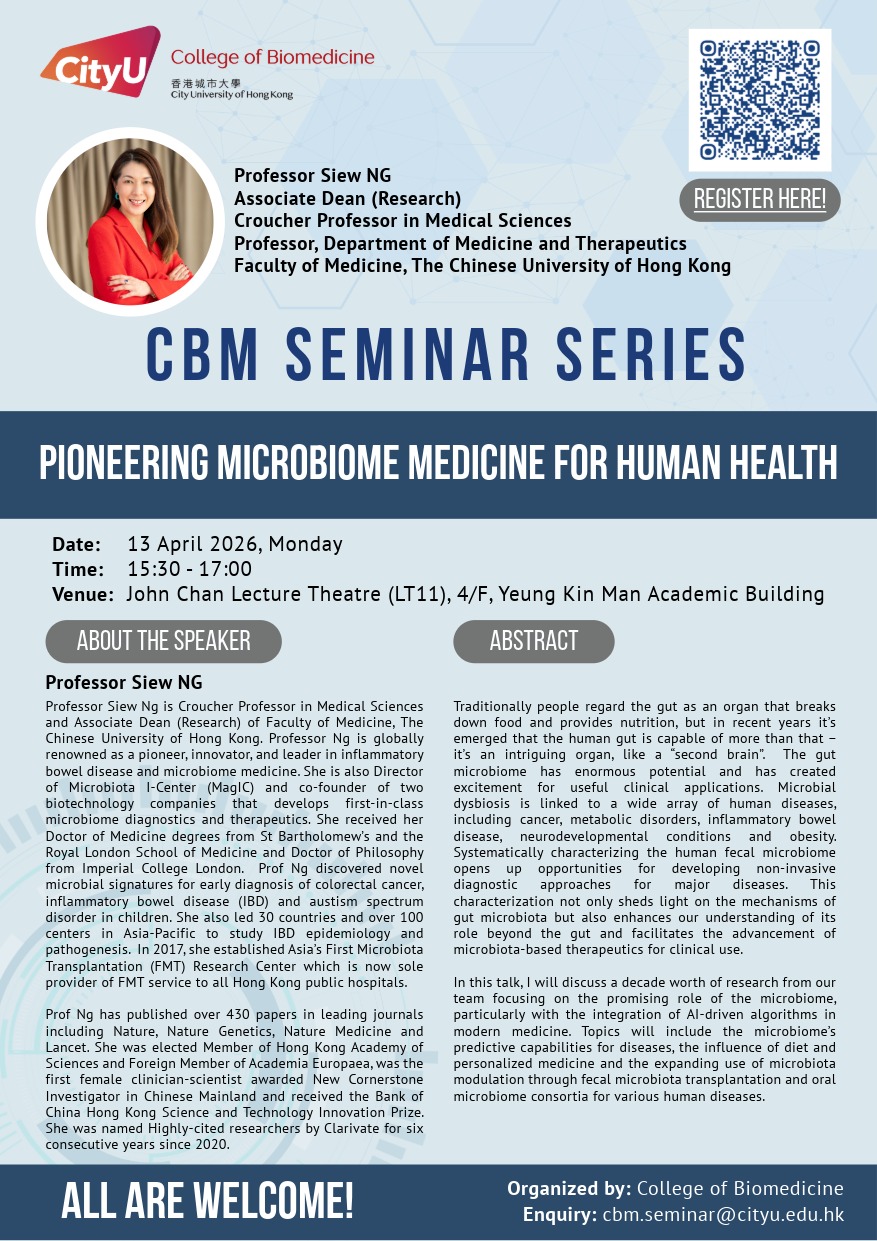 CBM SEMINAR SERIES: PIONEERING MICROBIOME MEDICINE FOR HUMAN HEALTH