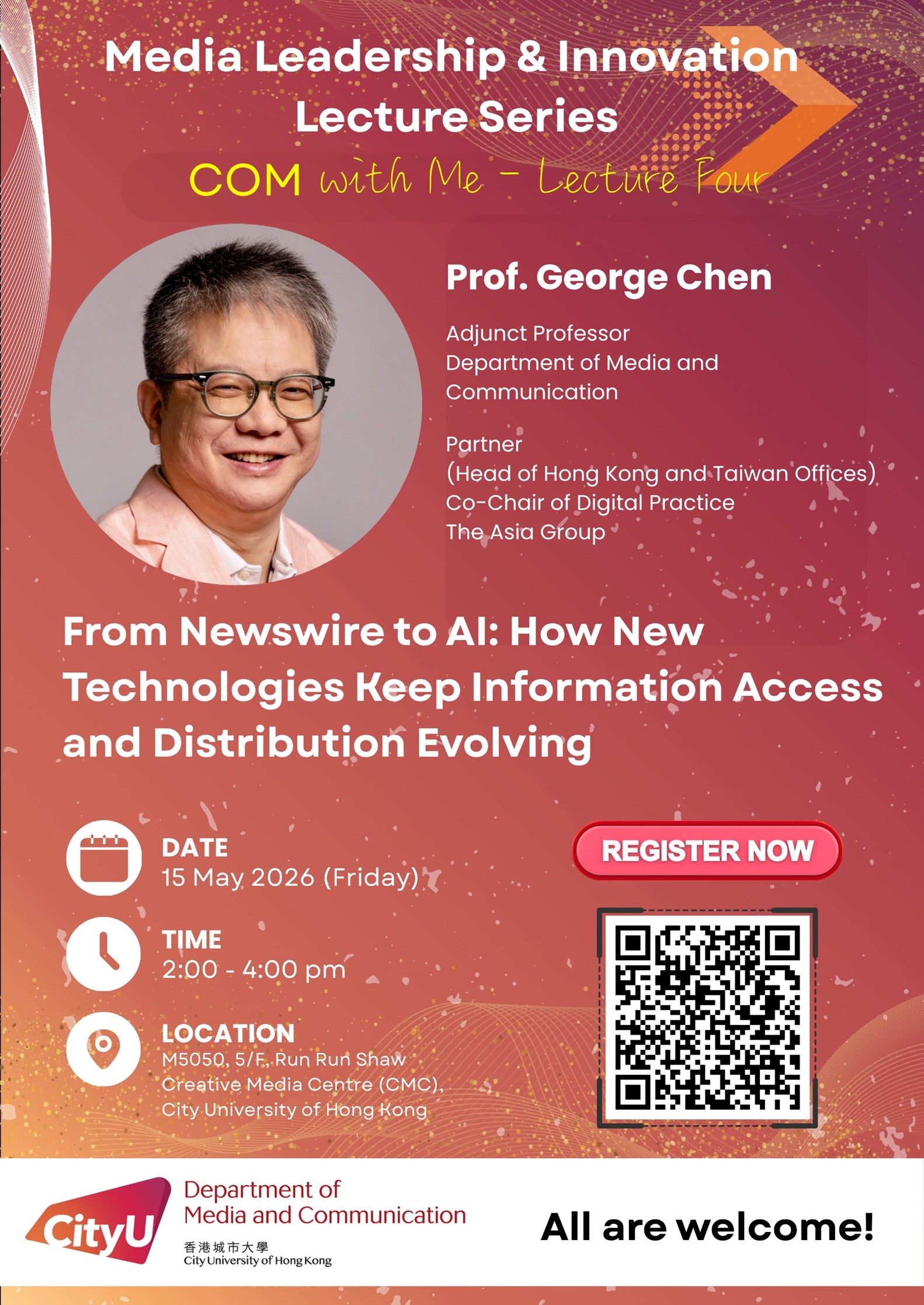 Media Leadership & Innovation Lecture Series COM with Me – Lecture Four: "From Newswire to AI: How New Technologies Keep Information Access and Distribution Evolving"