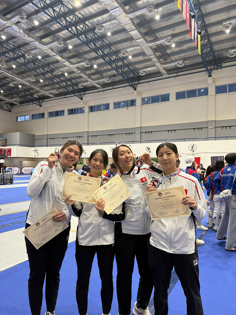 “It was my first-ever Asian U23 competition to compete against such talented fencers. I feel grateful to win a gold medal with my wonderful teammates. With the new season starting next month, I hope to maintain this momentum and aim to qualify for the main rounds of competitions. Additionally, my short-term goal is to perform well in the National Games next month, where I hope we can achieve a medal in front of the Hong Kong audience,” said Chloe.