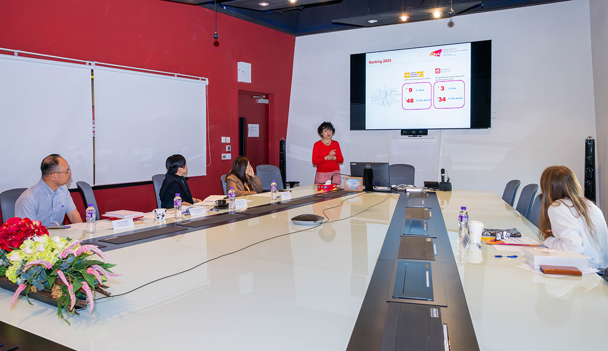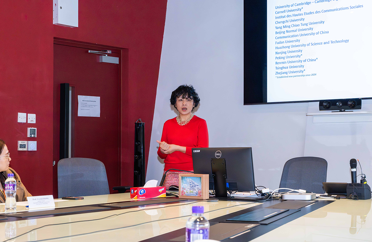 During the visit, Prof. Chen participated in an academic meeting with COM faculty members, including Prof. Yi-Hui Christine Huang, Head and Chair Professor; Associate Head and Professor Chris Fei Shen; Prof. Li Crystal Jiang, Associate Professor; and Adjunct Professor Shirley Chong, who also serves as the Director of the Communications and Institutional Research Office at CityUHK. The discussion focused on potential collaborations in student exchange programs at both undergraduate and postgraduate levels, as well as opportunities for joint research initiatives.