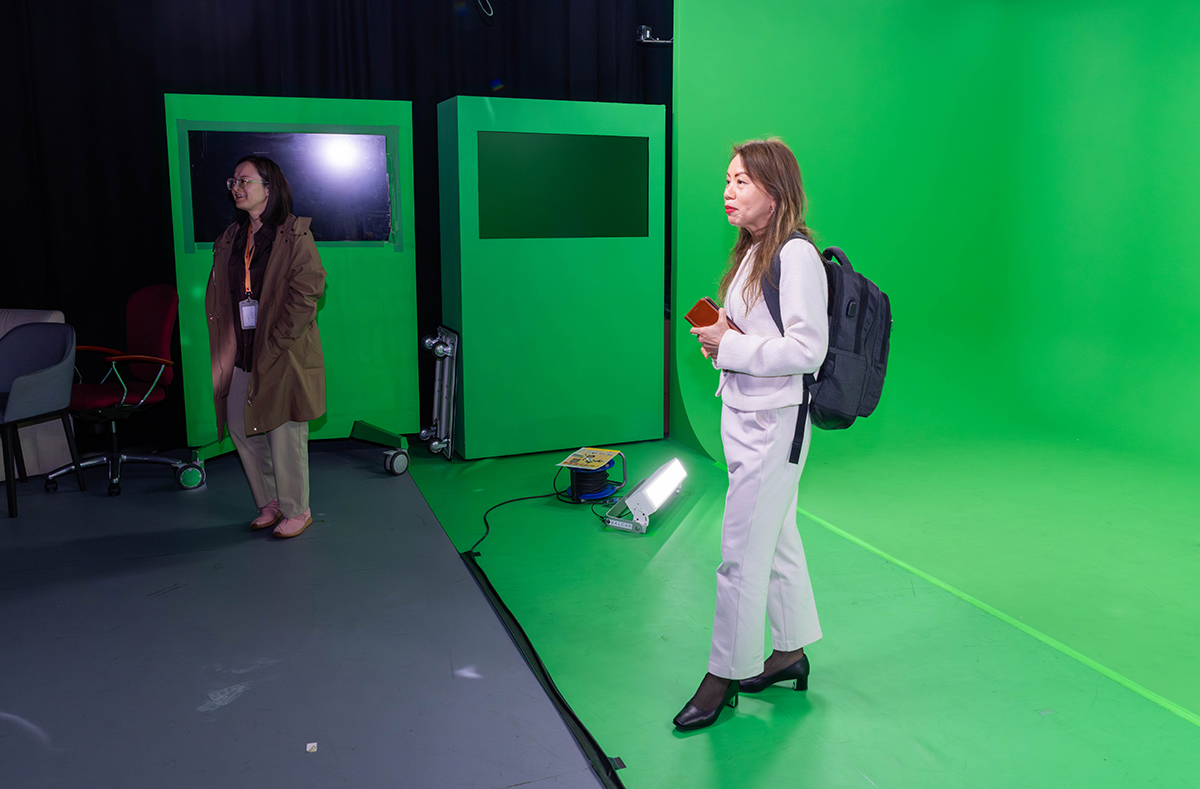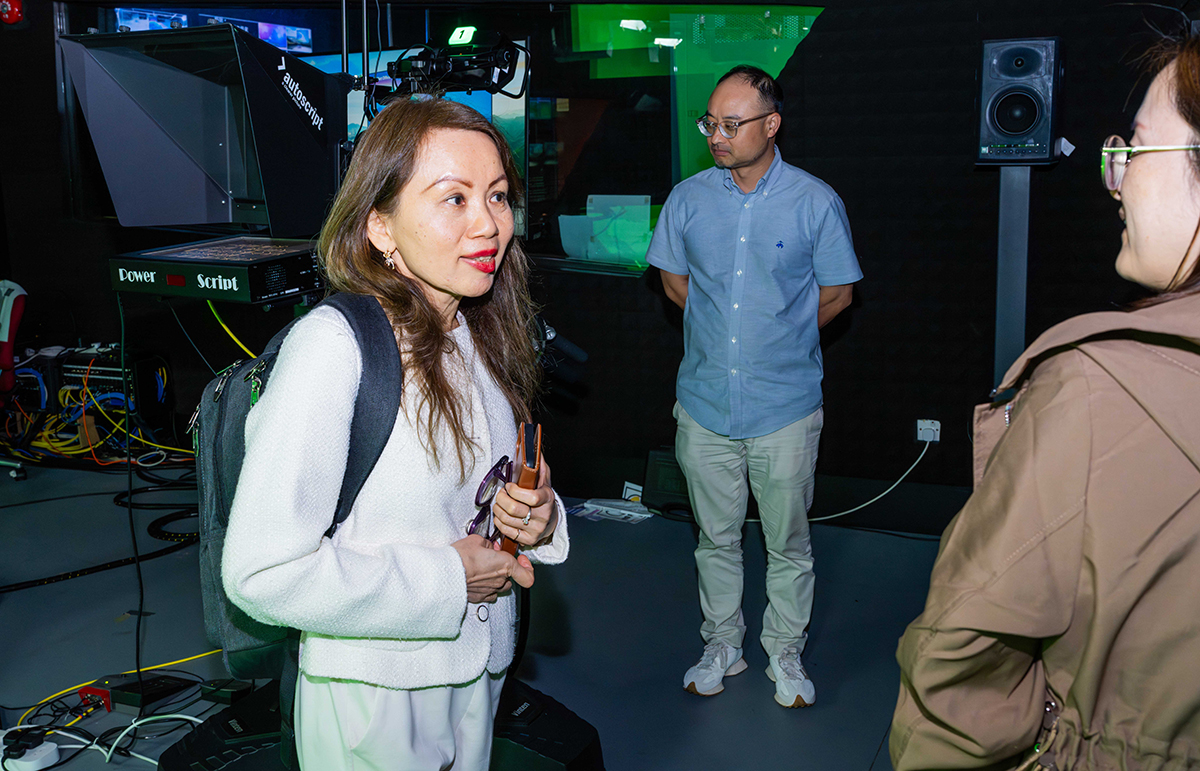 To gain deeper insights into the department, Prof. Chen was given a guided tour of its state-of-the-art facilities. The tour included visits to the Omnimedia Digital Newsroom, 3D Virtual TV Studio, Advertising Design & Shooting Studio, and Digital Broadcasting Recording Room.