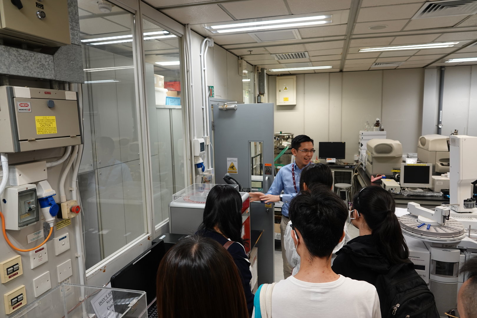This year, a guided lab tour named “Journey of Exploring University Chemical Instrumentation” was also arranged by our Department of Chemistry. In the 45-minute tour, our faculty member and the laboratory technicians briefly introduced the usage of different research-related equipment, including the scanning electron microscope. The tour ended at the Aquatic Science Laboratory conserving the horseshoe crabs, where the participants had a glimpse of the habits and life-threatening crisis the crabs face.