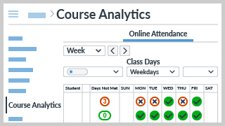 | Description | You can view the Online Attendance report in Course Analytics. If a student meets the requirements of any selected criteria (only "Course Access" enabled by default), they will be marked as present for that day in the Online Attendance report. |