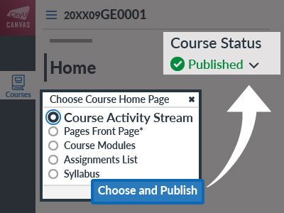 If the popup "Choose Course Home Page" is shown, choose the preferred option from the list and then click the button.
