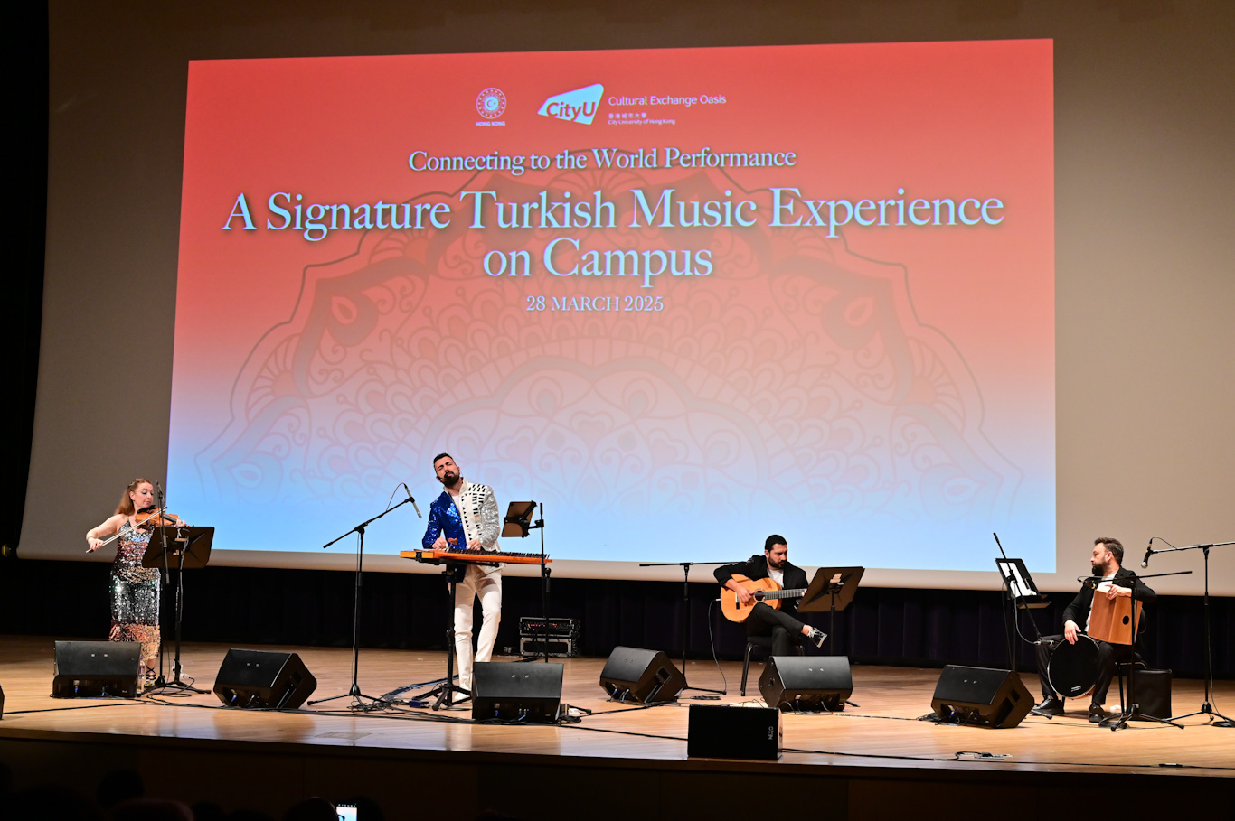 The Cultural Exchange Oasis (CXO) of City University of Hong Kong (CityUHK) in collaboration with the Consulate General of Turkiye in Hong Kong, hosted an enchanting event titled “Connecting to the World Performance: A Signature Turkish Music Experience on Campus” on 28 March 2025. Nearly 600 enthusiastic attendees gathered to celebrate the rich musical traditions of Turkiye.
