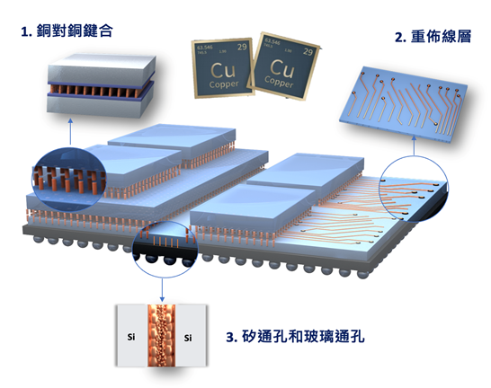 The key components of 3DIC technology include Through Silicon Via (TSV), redistribution layer (RDL), and direct copper-to-copper bonding (Cu-Cu bonding), which are essential for facilitating signal communication and power distribution between layers. To continue scaling down, challenges such as high bonding temperatures, copper surface oxidation and limited electromigration lifespan remain significant obstacles.