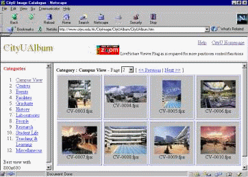 To demonstrate some of the possible uses of this brand-new facility, a ready-to-use image library named “CityImage” has been established. The CityImage is a Web-based collection of images made ready for staff and students for academic, research and administrative uses. At the moment there are 3 categories: CityU Album, Image Collections and Reality Studio.