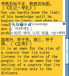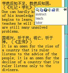 Users may use this dictionary as an aid to read and write documents on-line. Whenever there is any unfamiliar or "foreign" vocabulary, either in English, or Chinese, you just highlight or point to the word using your mouse, and you will see PowerWord's instant translations and pronunciation. There is also an input field for search purposes. The input type can be in English, simplified or traditional Chinese. If you load it as start up, you can look up the meanings of any unfamiliar vocabulary.