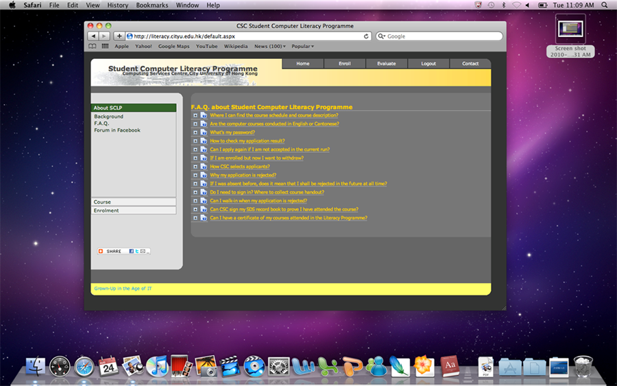 The website (http://literacy.cityu.edu.hk) of the Student Computer Literacy Programme (SCLP) has been revamped this summer to better serve the needs of students and meet the requirements of today’s web standard. The following web design guidelines have been adopted:
