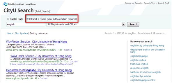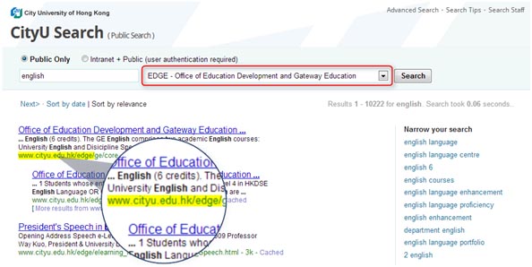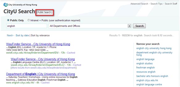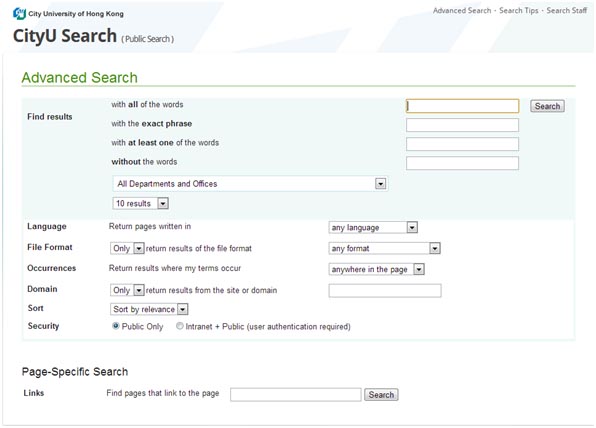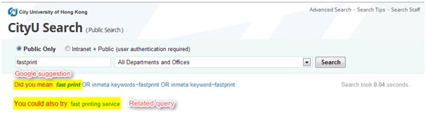 The Google Search Appliance (GSA) does not crawl departmental / project websites that are not chained from the CityU homepage and therefore would exclude them from the search results. If you would like your website to be crawled by the GSA, please raise a CSC work request to add your departmental / project website to the GSA crawling list. In doing so, your website will be included in the search results after 24 hours.
