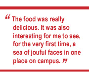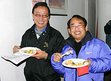 (Who ate all the smoked salmon Caesar salad?), were served. There were also more varieties of Chinese New Year pastries, vegetarian food and desserts than ever. The Multi-purpose Room was packed with contented gourmands, roving from table to table, whose appetites seemed to show no sign of abating during the hour-long feast.