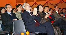 Professor H K Chang, President, who kicked off the party celebrations by painting the eyes of the lion after the ceremonial dance. "Year 2003 was full of hardship and challenges for
