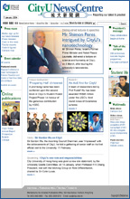 The news is now flanked by a field of functional enhancements. We have added interesting “side dishes” to the main menu of news: student life, online publications, events calendar, talk of the campus, and the President's messages. There is more to explore, read and see, including a link to CityU's video and multimedia archive.