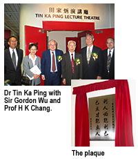 Dr Tin Ka Ping, the University has today named Lecture Theatre One (LT-1) after the distinguished industrialist and philanthropist