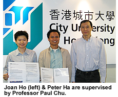 Endeavour Australia Cheung Kong Awards” jointly offered by the Cheung Kong Group and the Australian Government. Joan and Peter will further their research on “Plasma Surface Modification of Biomaterials” and “Diamond-like Carbon Coating on Cutting Tools”, respectively, in Australia and Hong Kong. The students’ achievement typifies CityU’s success in applied research.
