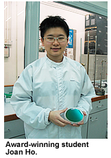 Joan Ho, 25, focuses her research on “Plasma Surface Modification of Biomaterials”. Her ambition is to become a scientist and to invent novel biomaterials suitable for implantation in human bodies in order to prolong human life. Joan has continued her studies at CityU upon graduation from AP in 2001. “I believe that cultural diversity in the research environment helps broadening my knowledge and vision,” she says. “After careful consideration, I decided to register in the PhD programme jointly offered by CityU and the