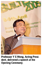 initiatives, energy efficiency and factors such as the reusability of materials, natural lighting energy and ventilation based on legislative requirements, the students adopted environmentally responsible approaches in their designs. Tied in with the Expo are activities including the “Student Projects of the Year” Competition, an opening ceremony and award presentation, a poster design competition and technical seminars delivered by distinguished academics and building experts.BuiltExpo was opened by the Honourable Leung Chun-ying, Member of the Executive Council, Hong Kong SAR; Professor Y S Wong, Acting President, CityU; Mr Pau Shiu-hung, Chairman of CityU’s Divisional Advisory Committee, BST; and Professor Richard Ho, Dean of Undergraduate Education at CityU.