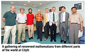 the William Benter Lecture, Professor Bourguignon also took the chance to meet visitors from the mainland and abroad in the Department of Mathematics as well as mathematicians from other local universities. This is the third time Professor Bourguignon has visited CityU. He participated in a satellite conference of the Beijing International Congress of Mathematics at CityU in September 2002 and spoke at the International Conference on Mathematics and Its Applications organized to honor Professor Roderick Wong, Chair Professor in the Department of Mathematics, Director of the Liu Bie Ju Centre for Mathematical Sciences, and now Dean of Research and Graduate Studies, on his 60th birthday in May 2004.The William Benter Distinguished Lecture Series on pure and applied mathematics, launched by the Liu Bie Ju Centre, began in January with Professor Roger Temam of the Université Paris-Sud and Indiana University Bloomington. The second lecture by Fields Medalist Professor Steve Smale, Honorary Professor of Mathematics at CityU and Emeritus Professor at the