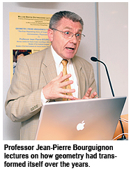 In his lecture “Geometry, From Uniqueness to Abundance -The Ever Repeating Story of Inspired Insights by Astronomers, Physicists”, Professor Bourguignon told a full house of staff and students how geometry had transformed itself over the years. “In a sense, changes in geometry over the centuries were very often achieved not by mathematicians but by suggestions from people outside mathematics,” he said.