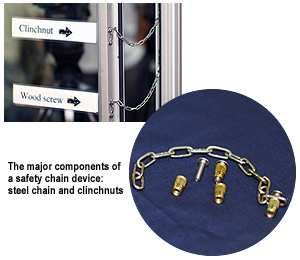 distinctly simple. We believe that the fixture will be widely accepted among local households.” Installation of a safety chain takes about five minutes. Two chains are recommended for one window frame. The time needed for completing installation for a household with 10 windows approximates one to two hours. Material cost for one safety chain is less than HK$10.“Safety chains are merely remedial measures,” said Professor Hung, “To effectively tackle the problem of falling window frames, more work can be done to improve the bar hinge design of aluminium windows.”
