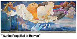 to create the spirit of Chinese civilization. In ‘Wanhu Propelled to Heaven’, I use my imagination to portray Wanhu from the Ming Dynasty, the first human in history attempting to realize his dream of flying by propelling himself into the skies using rockets. I am totally captivated by Wanhu’s scientific spirit, and I think