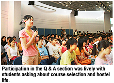 Participation in the Q & A section was lively with students asking about course selection and classroom study. One student asked if the determining factor for course selection should be personal interest or future career. Professor Chang replied that interests might change with time and career prospects might be affected by changing demands in society. “You may not make good choice, but you have to make your choice good,” he said.