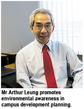 inception in 2000 to completion in October this year.“Environmental protection is an important factor in our campus development, which covers a wide range of topics such as ecological impact, site planning, wind corridor, sun angles in different seasons, and many more,” Mr Leung said. The environmental assessment covered not only green conservation, but a range of other factors such as the use of construction materials, handling of construction waste, construction methods, and management of premises, he said.