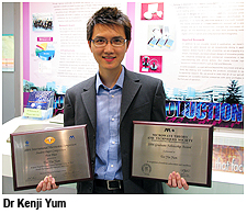 Dr Yum entered CityU as an undergraduate in the Department of Electronic Engineering in 1999. After finishing his undergraduate programme in 2002, Dr Yum continued his studies at CityU and obtained his PhD in Electronic Engineering this year. Over the last six years, Dr Yum's dedication to science research has brought him many awards in local and international competitions.