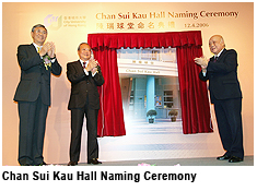“Dr Chan is widely acclaimed for his contributions to society, in particular to the development of education,” Professor Chang said. “I am delighted to have his support for our education philosophy. My gratitude goes particularly to his pledge to support our ‘Bridge to Success Project’ soon after the Government announced the second matching grant scheme last year. His promise greatly encouraged our fund-raising efforts,” Professor Chang said.