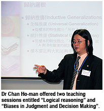 This year Dr Chan’s sessions entitled “Logical reasoning” and “Biases in Judgment and Decision Making” are launched in conjunction with two other sessions entitled “Misuse of Language and Fallacies” and “Creative Thinking” as a series to help secondary teachers develop their students’ language ability and higher-level thinking.