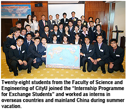 Twenty-eight students from the Faculty of Science and Engineering (FSE) of City University of Hong Kong (CityU) joined the “Internship Programme for Exchange Students” (IPES) and were sent to seven overseas countries and three Mainland cities during the summer vacation. They gathered today (19 September) to share their internship experience with sponsoring organizations, teachers and fellow students.