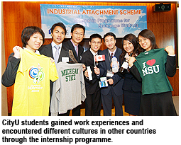 This programme showcases CityU’s efforts at actively exploring opportunities for students to apply their knowledge to a real working environment. The internship programme also helps strengthen the students’ professional knowledge and allows the students to be exposed to different cultures.