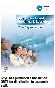 A booklet entitled Outcomes Based Teaching and Learning: The Experience has been published by the University for distribution to all academic staff. The publication details the experience and comments of teachers who have taught their courses in the OBTL framework, and the way ahead. A video introducing the concept and basics of OBTL will also be produced for distribution to teachers and students.