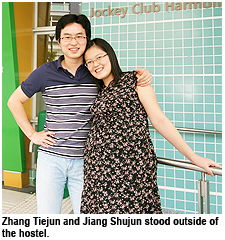 There are at present six couples, all students in the School of Graduate Studies, living at the Jockey Club Harmony Hall. Because this is the first time the University has arranged accommodation for married couples, Professor (Chair) Matthew Lee Kwok-on of the Department of Information Systems and Residence Master of Jockey Club Harmony Hall, has arranged for a hall tutor who will offer advice on balancing studies and family life.