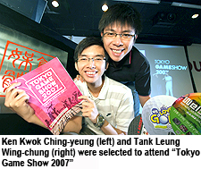 Two Bachelor of Science (Hons) in Creative Media students at City University of Hong Kong (CityU), Ken Kwok Ching-yeung and Tank Leung Wing-chung, attended the “Tokyo Game Show 2007”, one of the most renowned gaming expos in the world. They were among the first selected to attend this huge and exciting event through “I.T. Exchange Programmes 2006/07”. The programme was sponsored by the Office of the Government Chief Information Officer (OGCIO), organised by the Cyberport IncuTrain Centre and coordinated by Sony Computer Entertainment Hong Kong. The objective of the scheme is to nurture the talent within the Hong Kong creative media industry by providing opportunities for international exposure to the digital world.