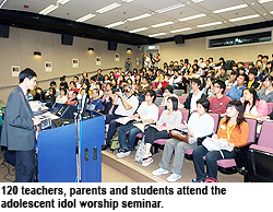 Fai-ming, Clinical Psychologist of Breakthrough, discussed the phenomena of adolescent idol worship with 120 teachers, parents and students at the seminar.